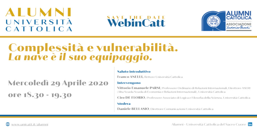 On Wednesday 29 April at 6.30 pm, the fourth #WebinCatt promoted by the UCSC Alumni community will take place, entitled: